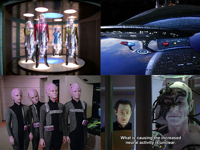 * แทรกเสริม : ทีวีซีรี่ส์ Star Trek : The Next Generation (1987 -1994) ตะลุยจักวาลรุ่น 2 : หลังรุ่นแรกเกษียณ รุ่นที่สองก็สานต่อ ทีมลูกยานหลัก 7 คน(เท่ารุ่นแรก) ประกอบด้วย คือ ฌอง-ลุค พิคาร์ด (กัปตัน), วิลเลียม ไรเคอร์ (ต้นเรือ), เดต้า (หุ่นแอนดรอยด์) และ วอร์ฟ (ต้นหนชาวคลิงออน), จอร์ดี้ ลาฟอร์ซ (นายช่าง), เบฟเวอร์ลี่ ครัชเชอร์(หมอ), เดียนน่า ทรอย (ที่ปรึกษาประจำยาน เป็นลูกครึ่งมนุษย์-เบตาซอยด์ มีความสามารถทางจิต)... ![]()