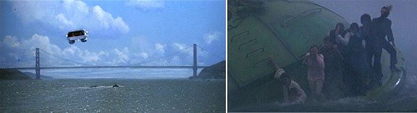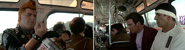 ปี ค.ศ. 2286 : เหตุการณ์ใน Star Trek IV (ภาค 4) : The Voyage Home : ข้ามเวลามาช่วยโลก![]() เป็นหนัง Star Trek ภาคที่ทำเงินสูงที่สุดเป็นประวัติการณ์นับจากภาคที่แล้ว (ได้ไป 109 ล้าน) สาเหตุน่าจะมาจาก พล็อตมีลูกเล่นแหวกแนวมากขึ้น+มีอารมณ์ขันมากขึ้น เพราะครั้งนี้เหล่าลูกยานเอ็นเทอร์ไพรซ์ต้องย้อนเวลาไปสู่อดีตเพื่อตามหา ปลาวาฬ(หลังค่อม)! ...ด้วยในโลกยุค(อนาคต)นั้น ปลาวาฬสูญพันธุ์ไปจากโลก แล้วบังเอิญเกิดมียานลึกลับรูปทรงประหลาดเป็นรูปทรงกระบอก!(ซึ่งไม่รู้ว่ามาจากไหน? ใครเป็นเบื้องหลัง?) มามาดเดียวกับยานลึกลับในภาคแรก มันมาเพื่อตรวจสอบว่า ยังมีปลาวาฬอยู่บนโลกมั้ย โดยเจ้ายานที่ว่านี่เป็นยานสำรวจ ประมาณสำรวจสภาพดวงดาว ตรวจสอบโดยใช้สัมผัสกับคลื่นเสียงของปลาวาฬ(ที่เรียกปลาวาฬร้องเพลง)เป็นเครื่องเช็ค หากดาวดวงไหนไม่มีปลาวาฬ แสดงว่ามีดาวนั้นเป็นมลพิษหรือมีความอันตรายสูงมาก ถึงขนาดทำให้ปลาวาฬสูญพันธุ์ไปได้ ดาวดวงนั้นจึงต้องถูกปฏิรูป(หมายถึงล้างโลกมนุษย์อาจต้องสูญสิ้นด้วย) เพื่อดาวจะได้เริ่มต้นปรับสภาพโลกใหม่ ทำนองนั้น - ยานลึกลับรูปทรงกระบอก! เมื่อตรวจไม่พบปลาวาฬ จึงเริ่มโจมตีโลก! - แต่โลกเรายุคนั้นไม่มีปลาวาฬ มันสูญพันธุ์ไปหมดแล้ว (จากการล่าของมนุษย์ในอดีตนั่นเอง) ทำให้ทีมเอ็นเทอร์ไพร์สของกัปตันเคิร์ก ต้องออกปฏิบัติการกอบกู้โลกด้วยการวิธีการย้อนกลับไปปี 1986 เพื่อนำปลาวาฬหนึ่งคู่กลับมายังโลกปัจจุบันให้ได้ - ทีมกัปตันเคิร์ก ย้อนสู่อดีตสู่ปี1986 ในมหานครนิวยอร์ค ตามหาปลาวาฬ - ภาคนี้ได้ Leonard Nimoy หรือสป้อคของเรามากำกับตามเคย ซึ่งต้องชมเป็นพิเศษ แสดงนำด้วย กำกับไปด้วย แล้วดันทำได้ดีมากๆ กว่าคราวก่อนซะอีก ภาคนี้บอกได้เลยว่าใครดูก็ต้องชอบเป็นแน่ รวมไปถึงดนตรีประกอบที่ฟังเสนาะหู จากฝีมือของ Leonard Rosenman ซึ่งให้อารมณ์นุ่มนวลแบบที่ไม่มี Trek ตอนไหนทำได้เหมือน ทำให้ภาคนี้เป็นภาคที่สมบูรณ์ที่สุดอีกตอนหนึ่งของภาพยนตร์ Star Trek ไปโดยปริยาย เรียกว่าครบครัน ทั้งแง่คิด การเดินเรื่องที่ ลุ้นระทึกเป็นระยะๆ น่าติดตามตลอด +ความฮาแทรก รวมไปถึงการวิพากษ์วิจารณ์สังคมมนุษย์ปัจจุบันได้อย่างเฉียบคม อาทิ ฉาก เกรียนพังค์! คนหนึ่งเปิดเพลงเสียงดังรบกวนคนอื่น(บนรถเมล์) แต่ก็ไม่มีใครทำอะไรได้ทั้งๆที่สุดจะรำคาญเหลือทน สป็อคเห็นเข้าแกเลยใช้พลังชาววัลแคน เข้าไปกดจุดสลบซะเลย เรียกว่าสะใจคนดู :) - เกรียนพังค์ VS สป็อค -