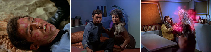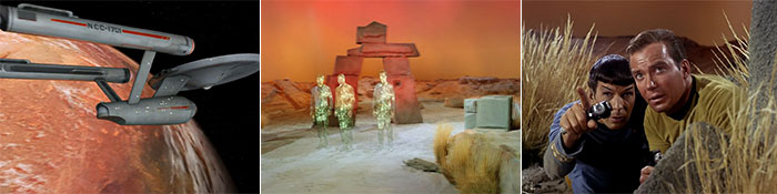 ![]() ซีรี่ส์ Star Trek นั้น ก่อกำเนิดขึ้นในปี 1966 (มาก่อน Star Wars ถึง 10 ปี ซึ่งเกิดขึ้นที่ 1977) เริ่มต้นบุกเบิกจากการสร้างสรรค์ของโครงเรื่องโดย "ยีน ร็อดเดนเบอร์รี (Gene Roddenberry)" ผู้อำนวยการสร้างและนักเขียนบทภาพยนตร์ชาวอเมริกัน...แต่แท้จริงแล้ว Star Trek ตอนแรกสุดกลับมีตั้งแต่ปี 1965 แล้ว ในชื่อว่า Star Trek : The Cage ซึ่งฉบับนั้น ตัวนำของเรื่องคือ กัปตันคริสโตเฟอร์ ไพค์ (Jeffrey Hunter) เป็นหนังสำหรับฉายทางทีวีของช่อง NBC ...และ มร.สป็อค (Leonard Nimoy) มนุษย์ต่างดาวชาววัลแคนหูแหลม ก็เริ่มปรากฏตัวตั้งแต่ฉบับนี้แล้ว สำหรับ Star Trek ตอนนี้จัดเป็นตอนแรก หรือทีเรียกว่า "The First Pilot Episode" ของซีรี่ส์ชุดนี้ แต่กลับไม่ได้ออกอากาศ ด้วยทางสถานีโทรทัศน์ NBC ยังไม่เชื่อมั่นและด้วยอาจเพราะยังใหม่ ทีมงานเลยต้องดัดแปลงใหม่ (ดัดแปลงจาก The Cage เดิมนั่นเอง) แล้วเปลื่อนชื่อตอนเป็น "Where No Man Has Gone Before" จึงได้ฉาย ... ซึ่งถูกจัดให้กลายเป็นตอนที่ 3 ของ Season1 แทน โดยตอนแรกของ Season1 ที่ฉายนั้น ได้สร้างที่หลังและได้อนุมัติฉายทางการมีชื่อว่าตอน "The Man Trap" (ออกอากาศ September 8, 1966) อันเป็นจุดเริ่มของตำนาน Star Trek ( *ส่วน The Cage เดิม ก็ไม่ได้ถูกดัดแปลง หรือละทิ้งทั้งหมด บางส่วนนำไปต่อยอดในตอนถัดๆไป กลายเป็นตอนที่ 11-12 ที่ชื่อว่าตอน The Menagerie ซึ่งเป็นตอนที่ได้รางวัล Hugo Award สาขา Best Dramatic Presentation อีกต่างหาก ) - ซ้าย ตัวอย่างคลิป ทีวีซีรี่ส์ Star Trek The Original Series : ขวา โปสเตอร์ยุคแรกๆของ The Original Series - เมือทีมบีมสู่พื้นดาว ( ลงไป 3คนคือ กัปตันKirk หมอMcCoy และลูกยานอีกคน) ลงไปแล้วเหมือนไม่มีปัญหาอะไร แต่กลับพบว่า Carter ไม่อยากให้ หมอ McCoy และทีมเอนเทอร์ไพรซ์ เข้ามายุ่งกับชีวิตเขาและดาวดวงนี้มากนัก ... และแล้วปมปัญหาใหญ่ก็เกิดขึ้น จู่ๆ ณ บนดาวนั้น ... Nancy ที่อยู่ด้านนอกกรีดร้อง พบลูกทีมเอนเทอร์ไพรซ์คนหนึ่งที่ลงไปด้วยนั้น ตาย! ดื้อๆ โดยหน้าตาเต็มไปด้วยรอยจ้ำแดงประหลาด ... Nancy บอกว่าน่าจะเป็นเพราะเผลอไปกินผลไม้บางชนิดของดาวนั้น หลังจากนั้น กัปตันKirk หมอMcCoy ก็นำร่างลูกทีมที่ตายกลับสู่ยาน(ที่ยังคงโคจรอยู่รอบดาว M-113ต่อไป) ตรวจพบว่าไม่น่าเกี่ยวอะไรกับการกินผลไม้หรือพืชพันธุ์อะไรบนดาว และยังพบผลประหลาดคือร่างกายลูกยานที่ตาย "เกลือ" หมดตัว! ... เรื่องราวหยุ่งเหยิงดำเนินต่อไป กัปตันKirk หมอMcCoy และลูกทีมคนใหม่อีกคน ลงไปพื้นดาวอีกครั้งหมายนำตัว Carter กับ Nancy ขึ้นยาน ด้วยห่วงความปลอดภัยและเพื่อสืบสวน แต่ทั้งคู่ไม่ยอม ทั้ง Nancy กลับหายตัวไป ... กัปตันKirkและลูกทีมก็จำต้องกลับขึ้นยานอีกรอบ เพื่อคิดหาทางไขปริศนาต่อไป ... ต่อมา ณ ช่วงเวลาระหว่างนั้นไม่นาน มีประกาศฉุกเฉินรายงานว่าบนเอนเทอร์ไพรซ์ มีคนตาย! อาการเดียวกับคนที่ตายก่อนหน้า ... เร